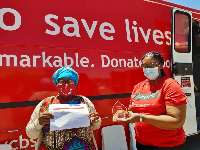 Victoria Ngqoboka was honoured by the Western Cape Blood Service (WCBS) for her dedication to promoting blood donation in her community in Khayelitsha.