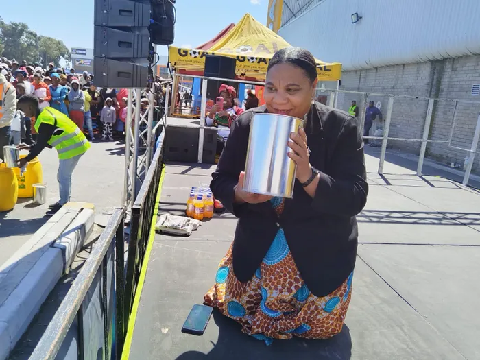 Ronalda Schivonne Nalumango, National Assembly chairperson of the portfolio committee on tourism, takes a sip of Umqombothi.