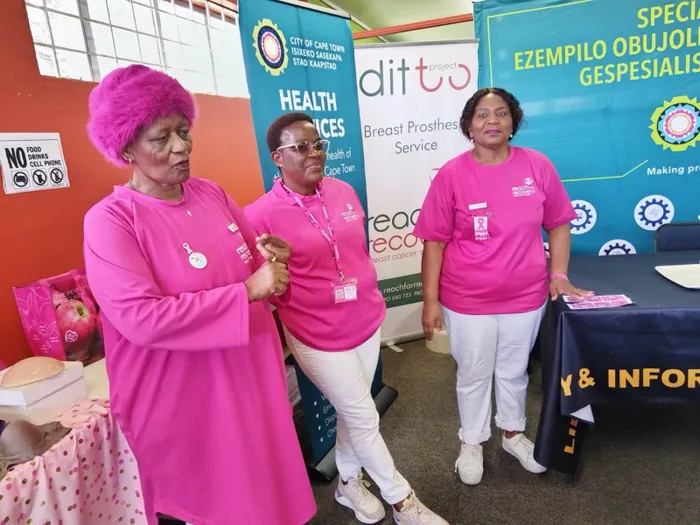 Cancer survivors and Reach for Recovery Breast Cancer and Support Joyce Witbooi, Phumza Jongwana, and Vuyiswa Marhubelela encouraged women to seek help immediately if they notice any changes, irritations, or lumps in their breasts.