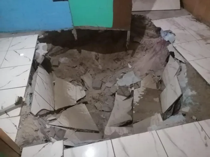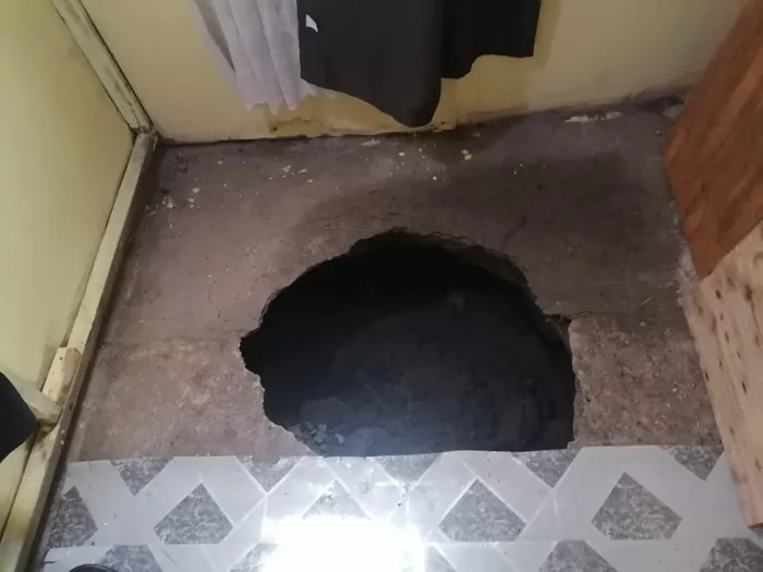 “I was fast asleep at midnight when I heard a huge sound inside my two-roomed shack. A few minutes later, I smelled sewage - and within the blink of an eye, my floor collapsed, leaving a huge hole,” she said.