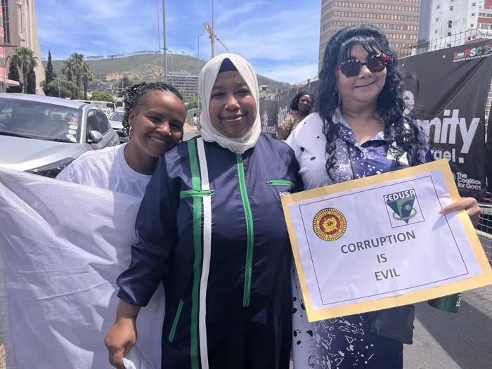 Federation of Unions of South Africa (FEDUSA) Carmelete Smit, from Elsies River, general secretary Riefdah Ajam, from Bo-kaap, and affiliate National Union of Leather and Allied Workers (NULAW) Karen Coetzee, from Mitchell's Plain.