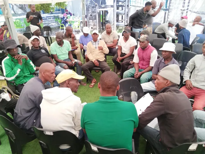 Amadoda in conversation during the Men's Dialogue at eTafeni.