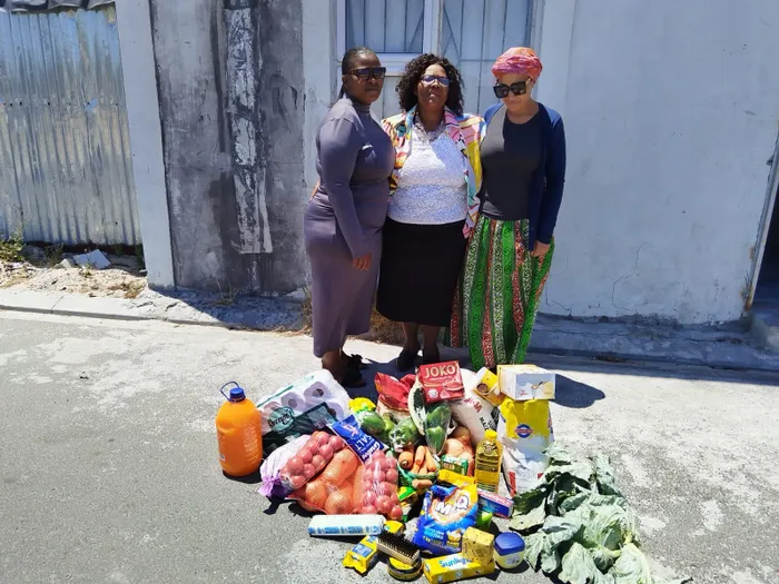 Pictured from left are Babalwa Tabata, Thembisa Skaap, and Phumeza Mkiva with some of the donations.
